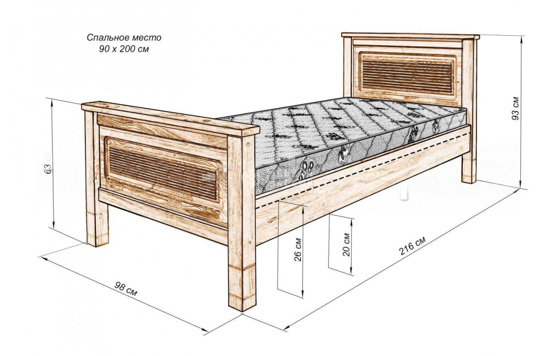 Кровать Фермер из экологически чистой натуральной древесины. изделие представлено в четырёх вариантах исполнения из древесины на выбор: сосна, берёза, бук или дуб. широкий выбор вариантов покраски позволяет органично вписаться в любой интерьер. отличается износостойкостью, прочностью, лаконичным дизайном. приобретайте изделие по выгодной цене с доставкой на дом в интернет-магазине «мебель массив». Осуществляется доставка на дом по Томску и Томской области.| Размер | Цена | |
