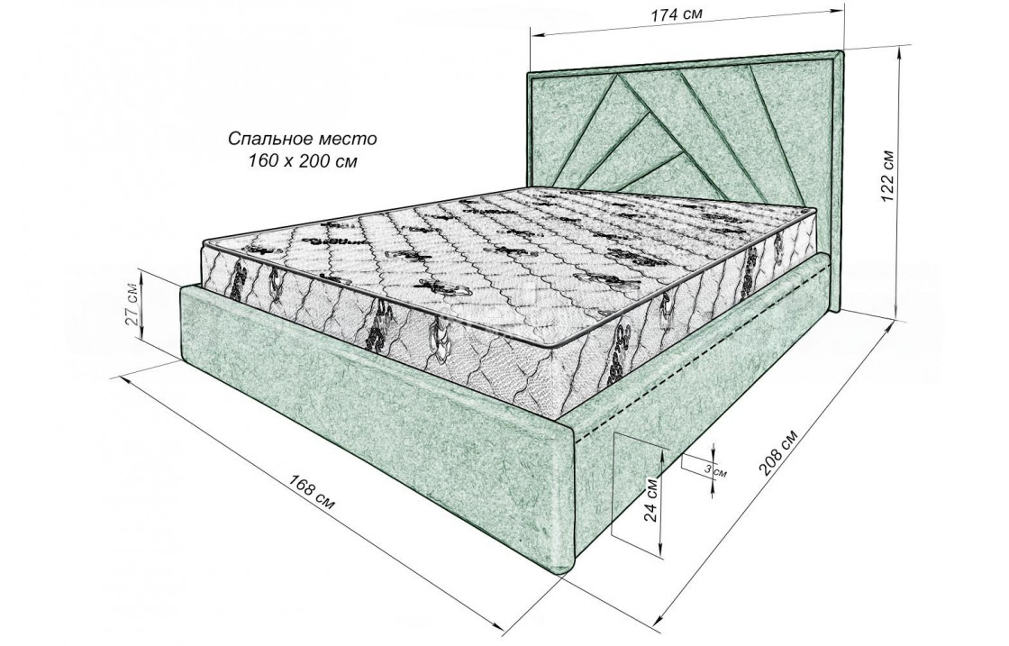 Бескаркасный подъёмный механизм обеспечивает легкий доступ к пространству под матрасом. Ключевые особенности: